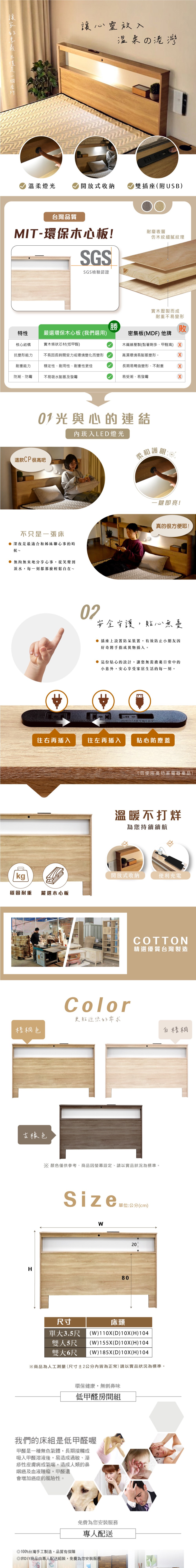 IHouse-山田 日式插座燈光床頭-雙大6尺古橡