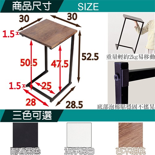 尺寸 :(長)30 × (寬)30 × (高)562.5/公分 桌板厚度:1.5CM
