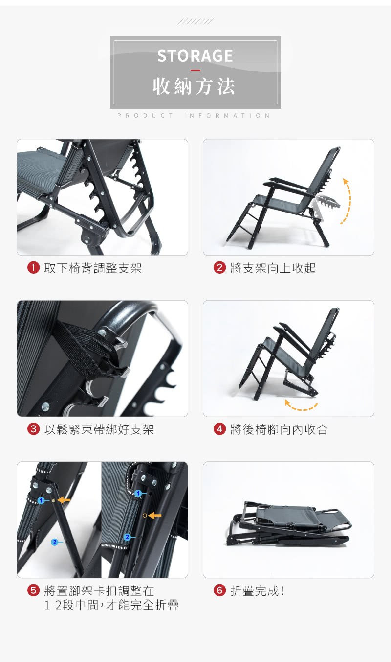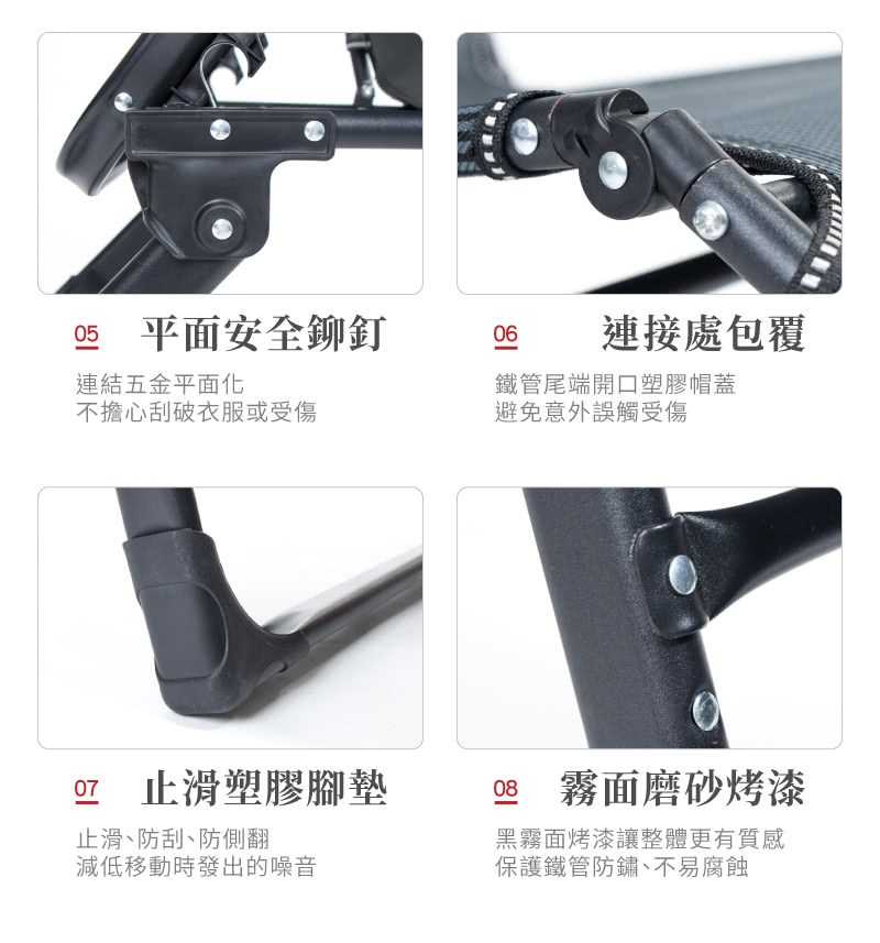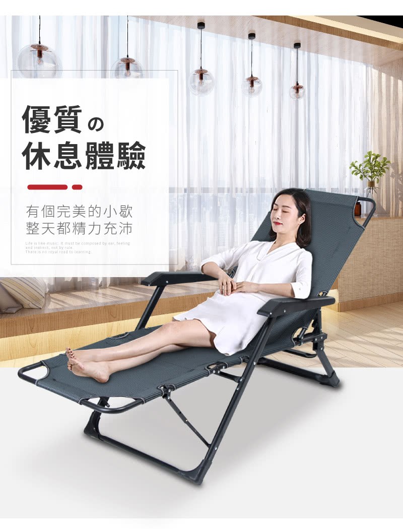 STYLE 格調 180度可平躺休閒躺椅 LE-008 可摺疊收納 附頭枕 高承重透氣 黑色