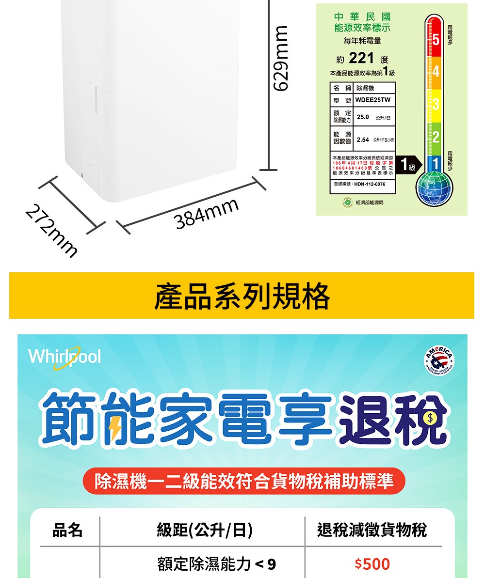 點我下載Whirlpool 惠而浦 一級能效25公升除濕機 WDEE25TW
