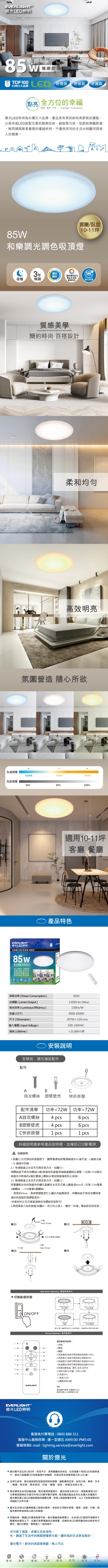 億光 85W和樂調光調色LED吸頂燈 星耀版