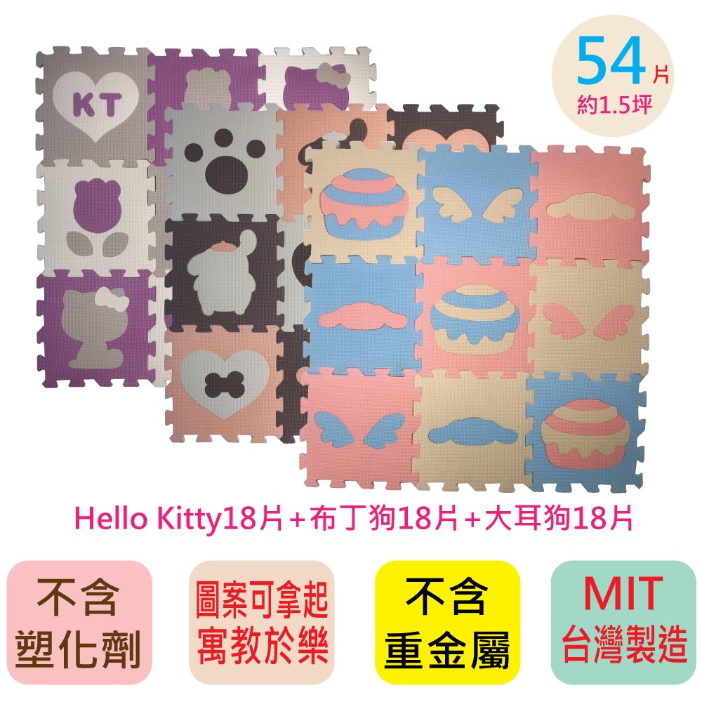 【PMU必美優】莫蘭迪系列巧拼54入(1.5坪)-KT款+布丁狗+大耳狗