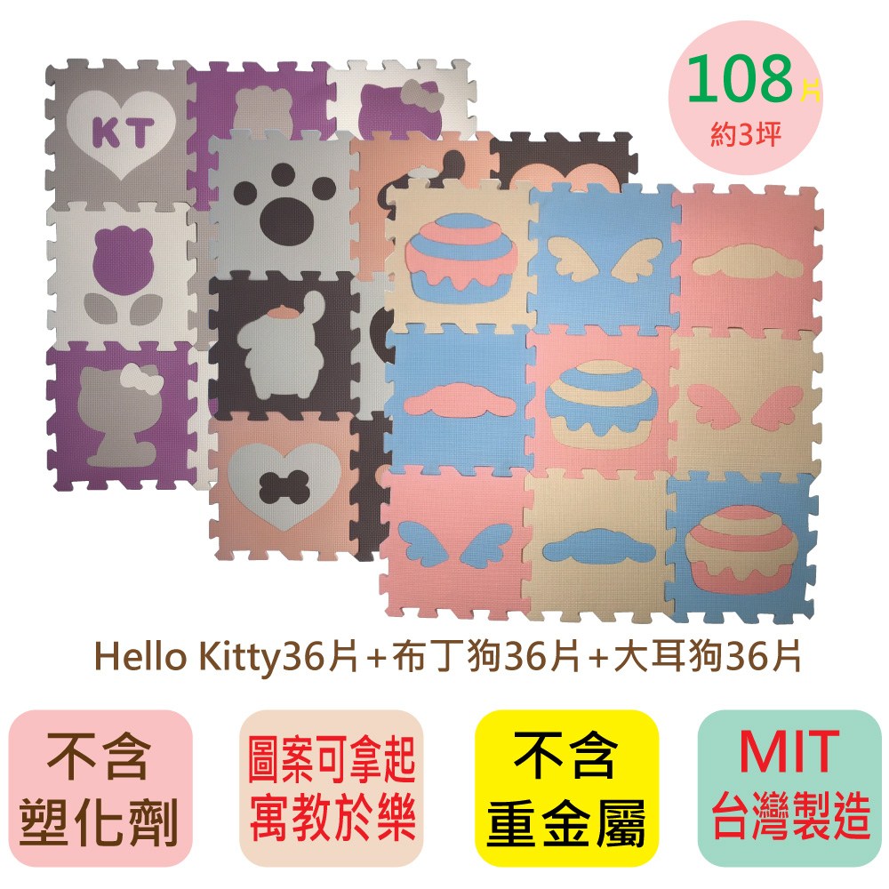 【PMU必美優】莫蘭迪系列巧拼108入(約3坪)-KT款+布丁狗+大耳狗