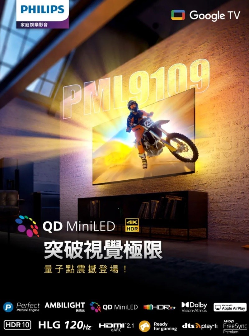 飛利浦 65型 65PML9109 Mini LED Google TV 顯示器 【智慧家庭】含基本安裝