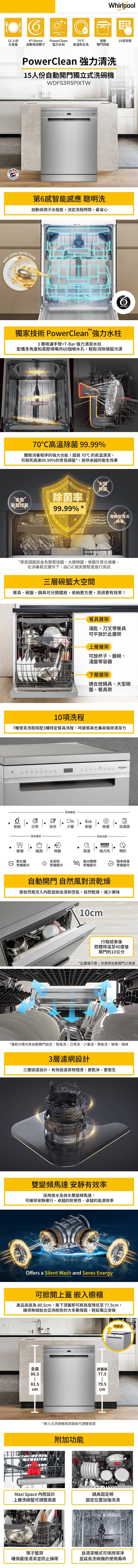 Whirlpool 惠而浦 14人份 自動開門洗碗機 WDFS2R4PWETW 白