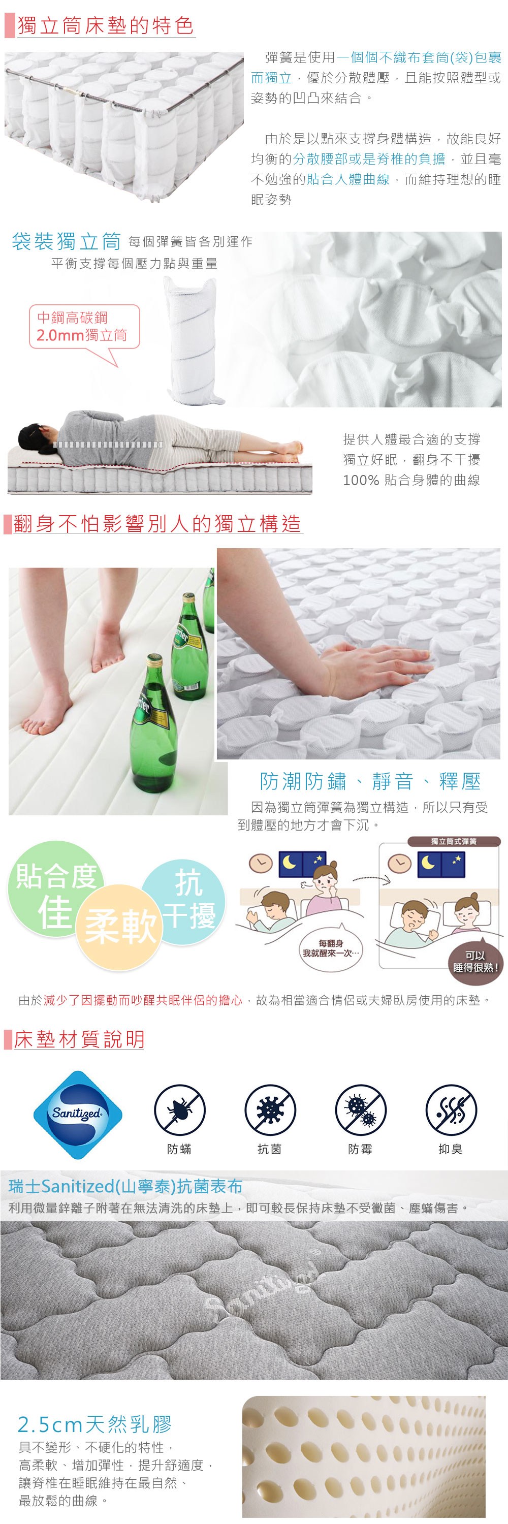 【Alisa】防螨抗菌靜音獨立筒床墊(雙大6尺)雙大6尺