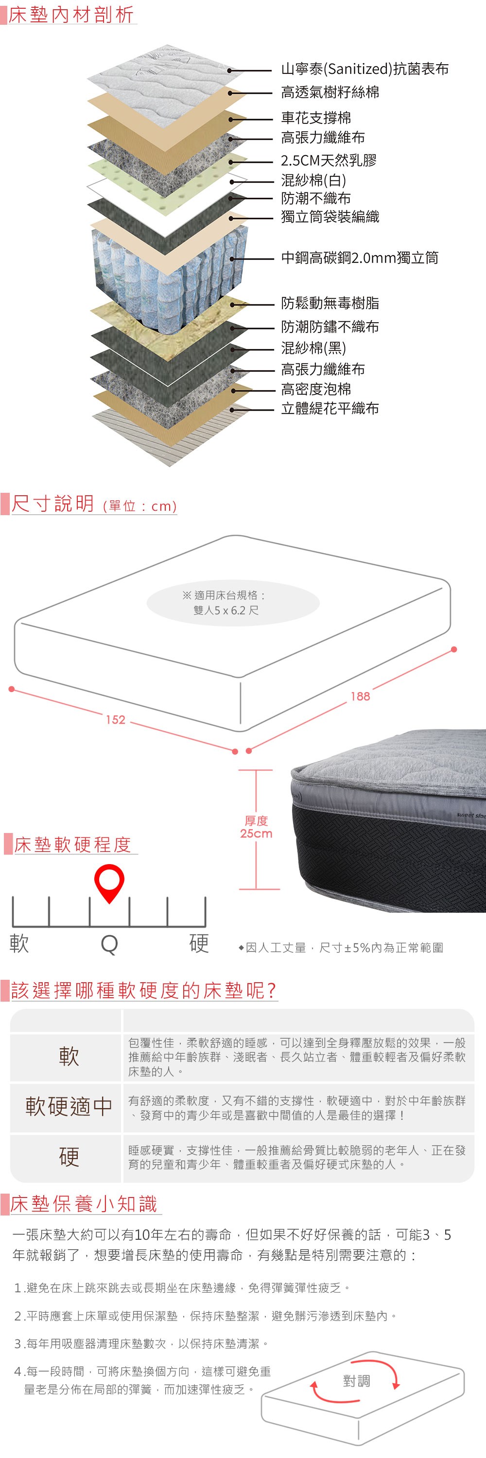 MG珍寶-飯店用-護腰型-乳膠抗菌硬式獨立筒床墊-雙人加大6尺