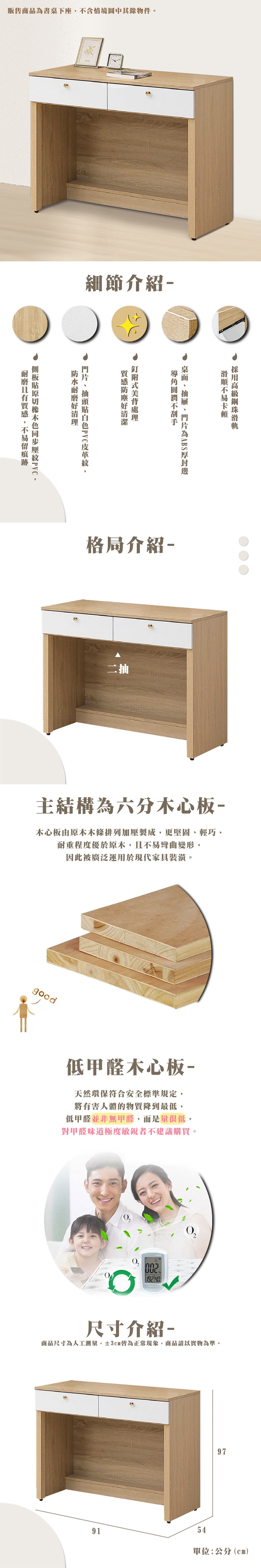【Homelike】喜家居雪杉色2.7尺二抽書桌(2504)