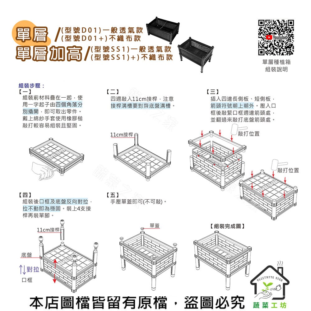 【蔬菜工坊】單層加高DIY種植箱(型號SS1+)不織布款(2入組)