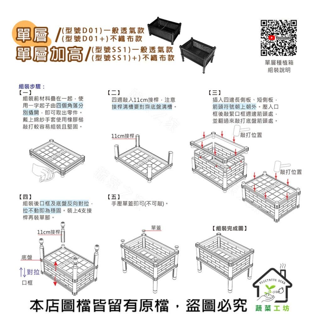 【蔬菜工坊】單層DIY種植箱/栽培箱(型號D01+)不織布款(2入組)