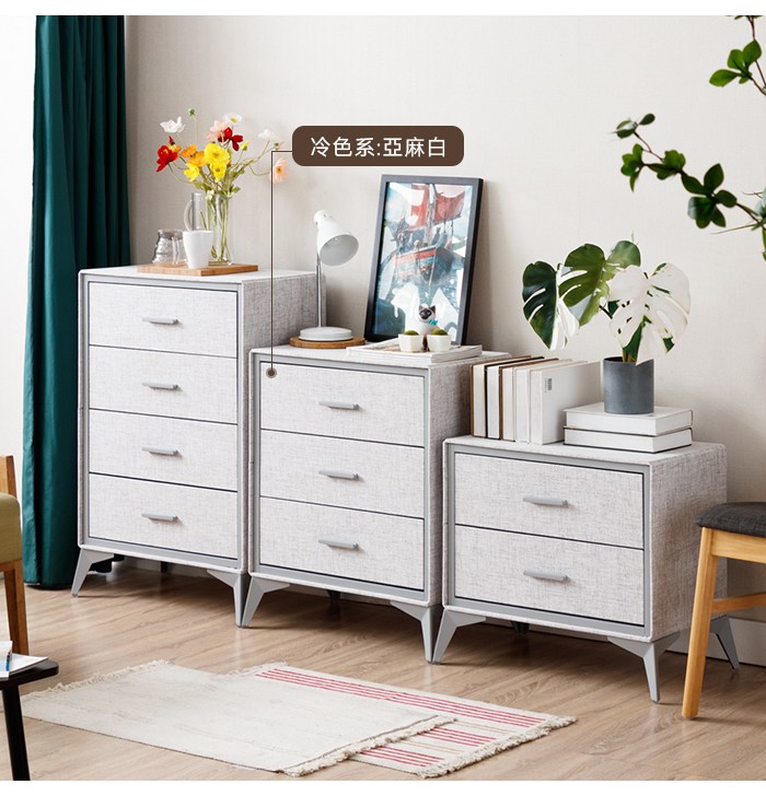 【慢慢家居】無印風-輕雲布藝四格抽屜收納櫃 ( 異材質拼接 金屬把手)輕雲布藝櫃-月影白