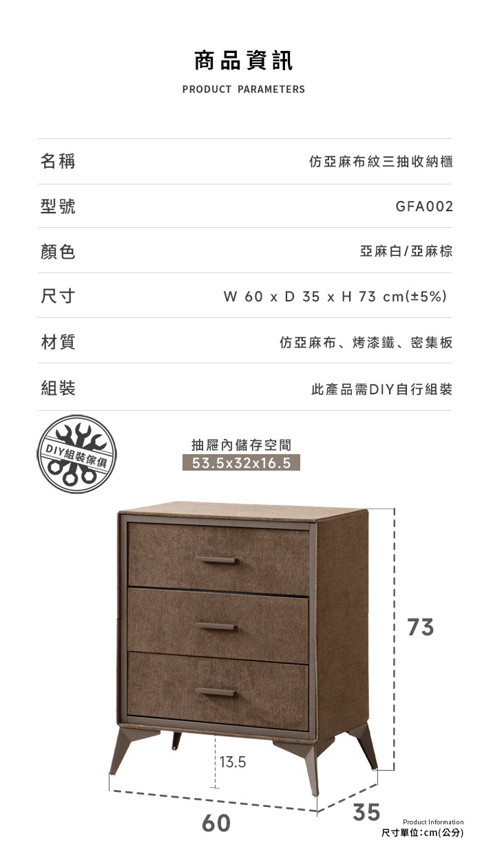【Amos】仿亞麻布紋三抽收納櫃亞麻白