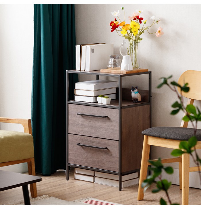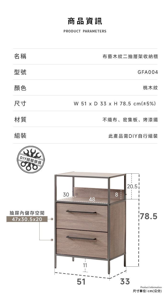 【Amos】布藝木紋二抽層架收納櫃桃木紋