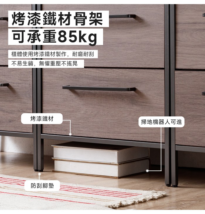 【Amos】布藝木紋四抽層架收納櫃桃木紋