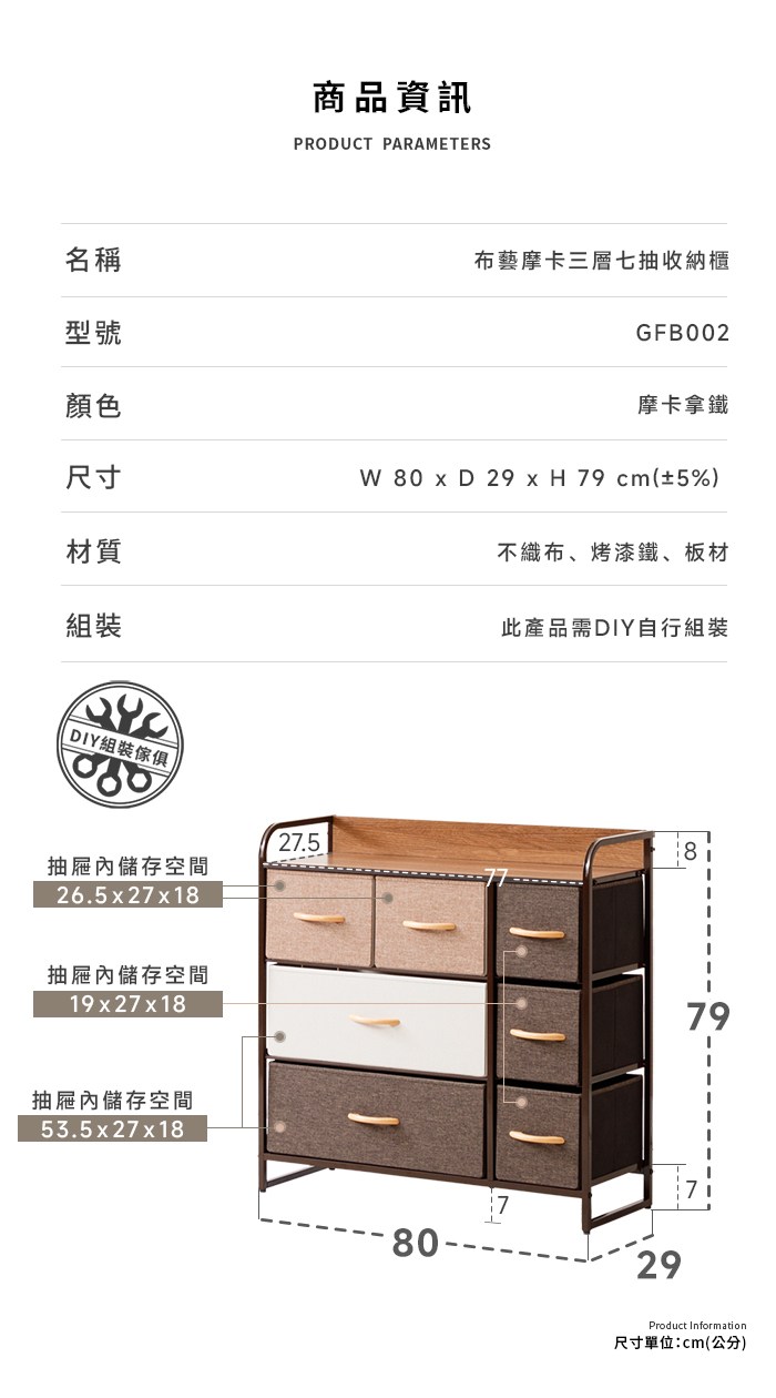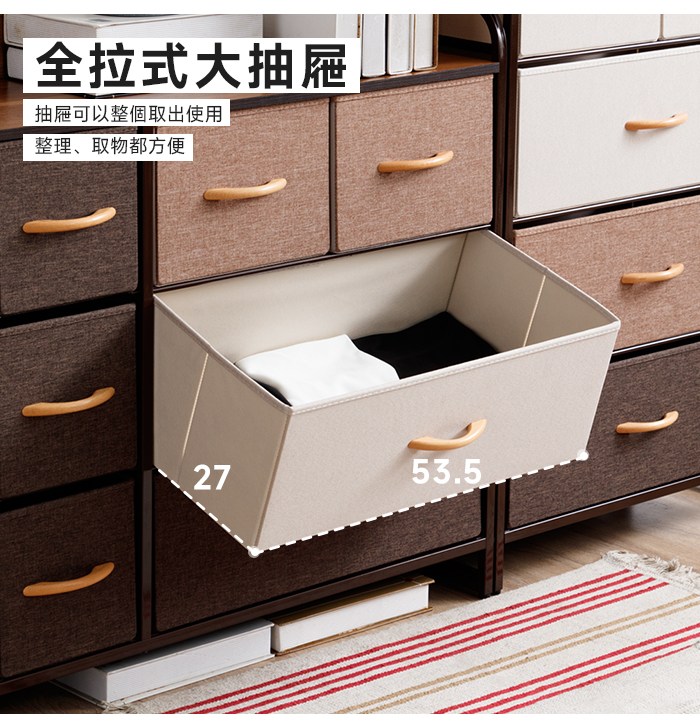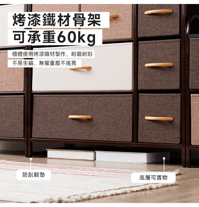 【Amos】布藝摩卡三層七抽收納櫃摩卡拿鐵