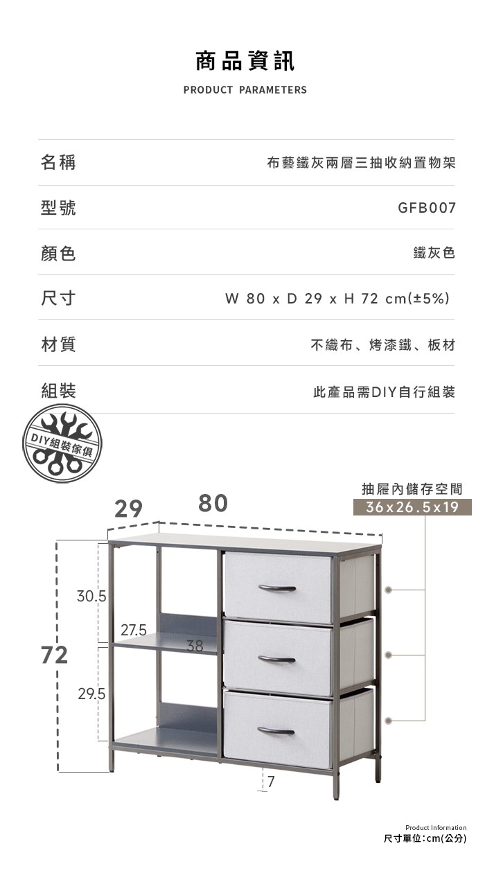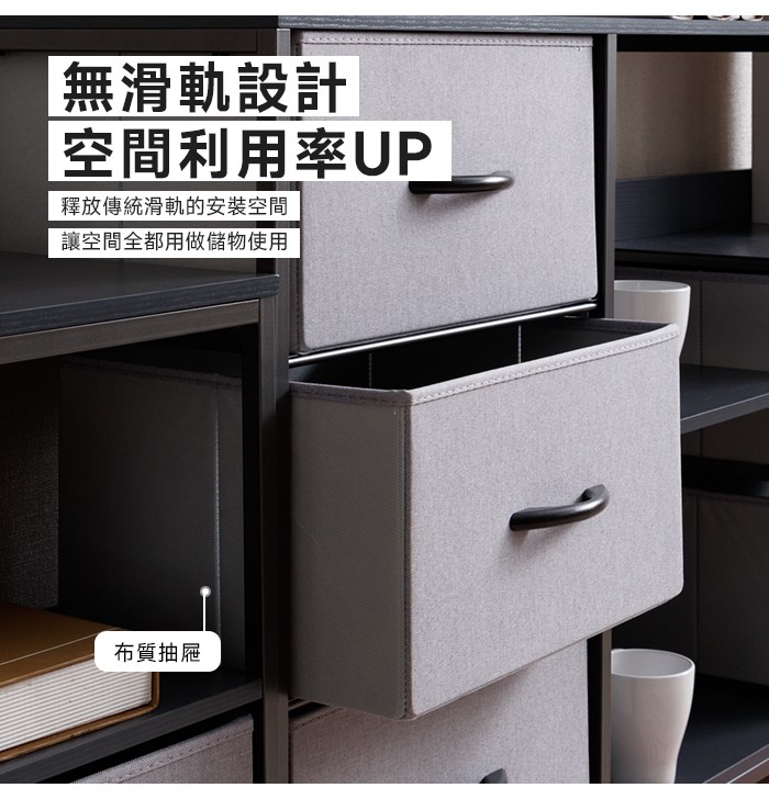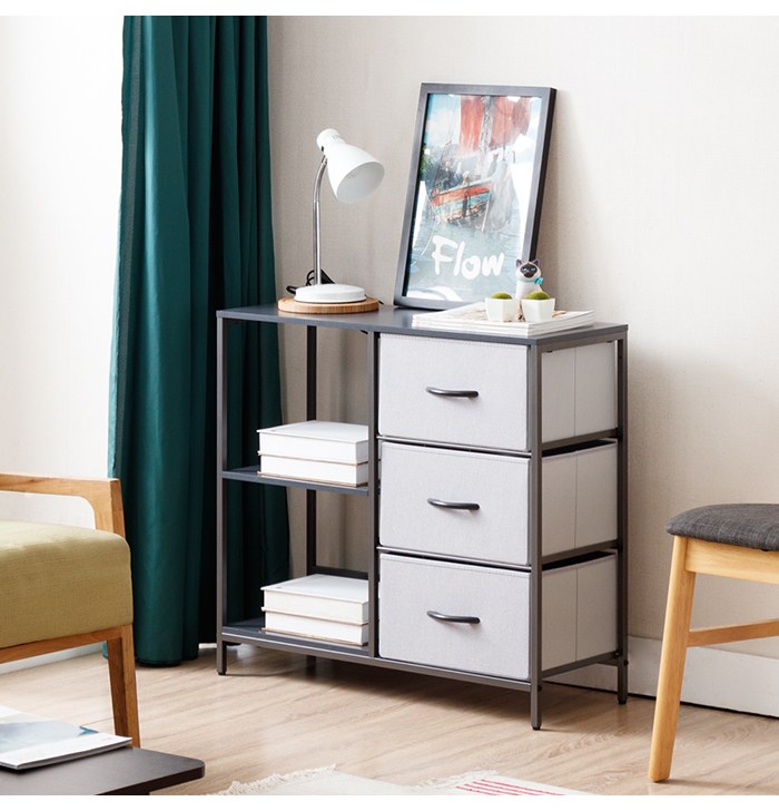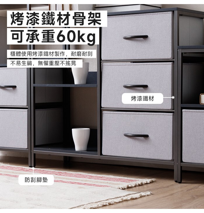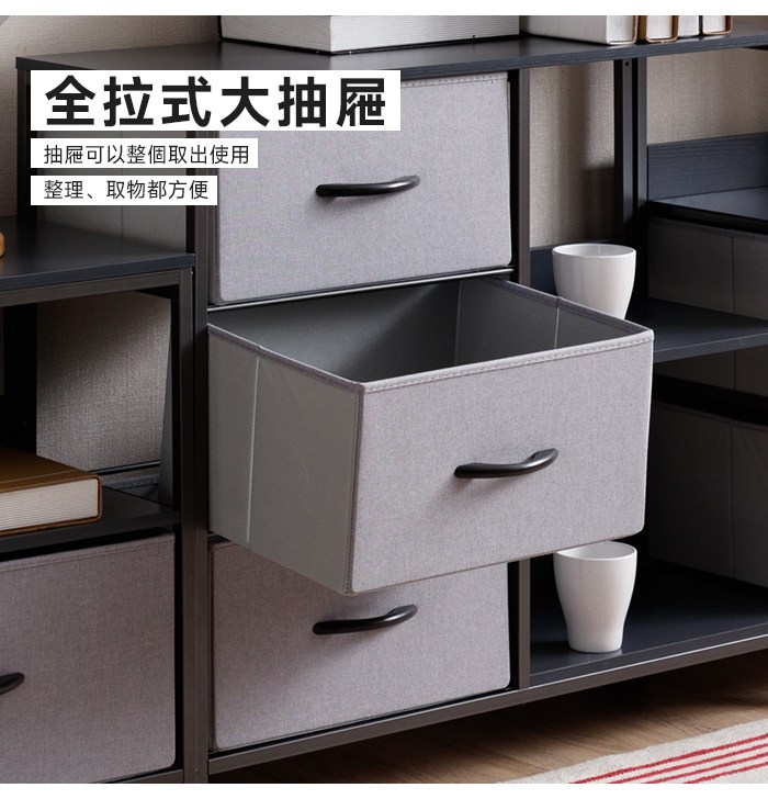 【Amos】布藝鐵灰兩層三抽收納置物架鐵灰