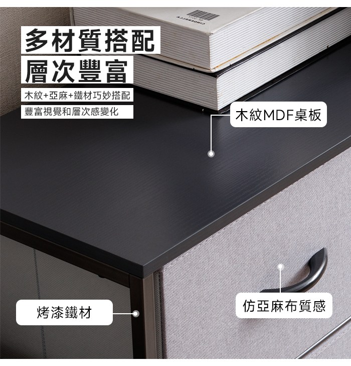 【Amos】布藝木紋二抽層架收納櫃桃木紋