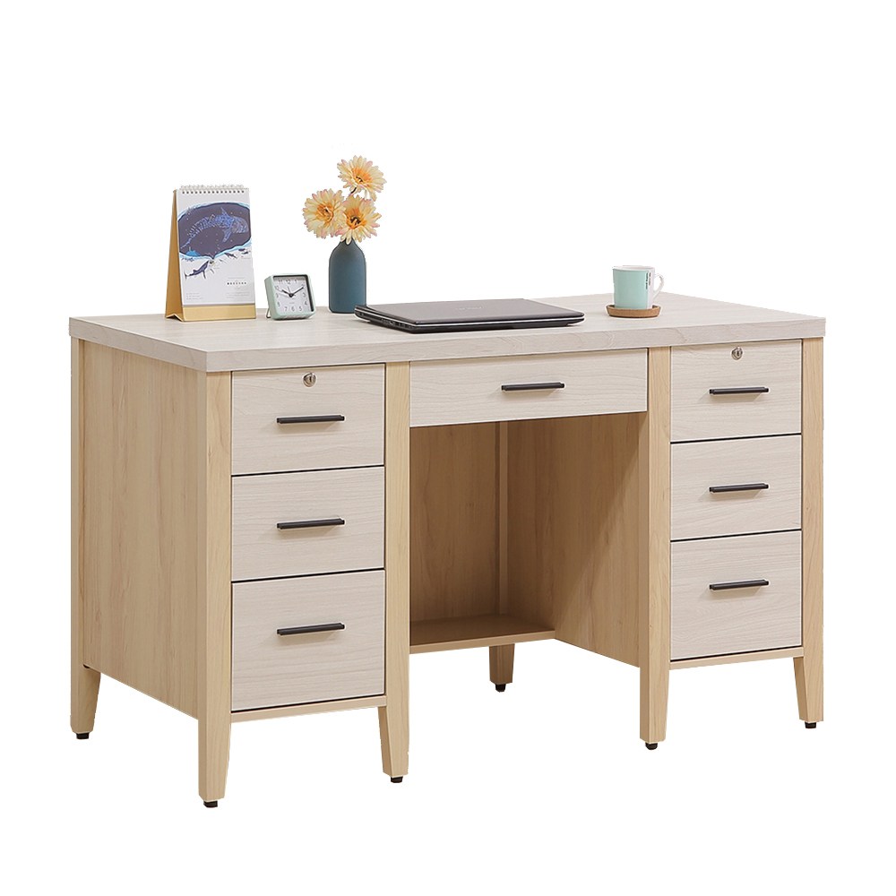 文創集 卡黛亞4尺五抽雙色書桌(桌面設置便利插座)-120x60x81-cm免組