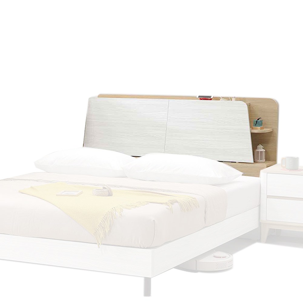 源氏木語西雅圖橡木原木色斜靠雙人5尺150x190夜燈低舖床架 Y90B28 (H014324397)