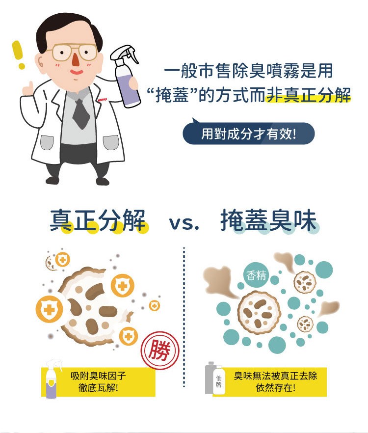 使用方法:使用前請先輕搖瓶身。可直接噴灑於有異味的地方,待自然風乾即可,不須特別擦拭;若有較頑固異味處.可重複噴灑至異味消除。