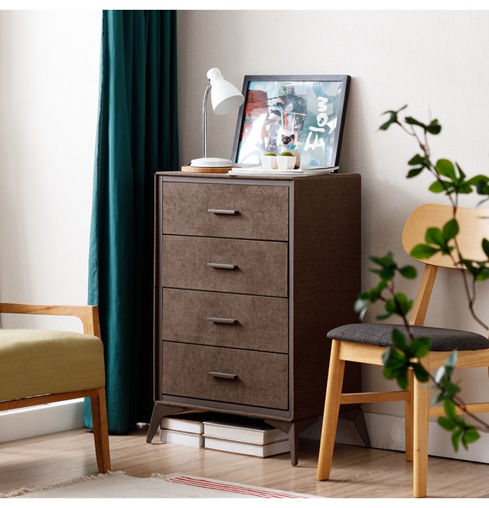 【慢慢家居】無印風-輕雲布藝四格抽屜收納櫃 ( 異材質拼接 金屬把手)輕雲布藝櫃-月影白