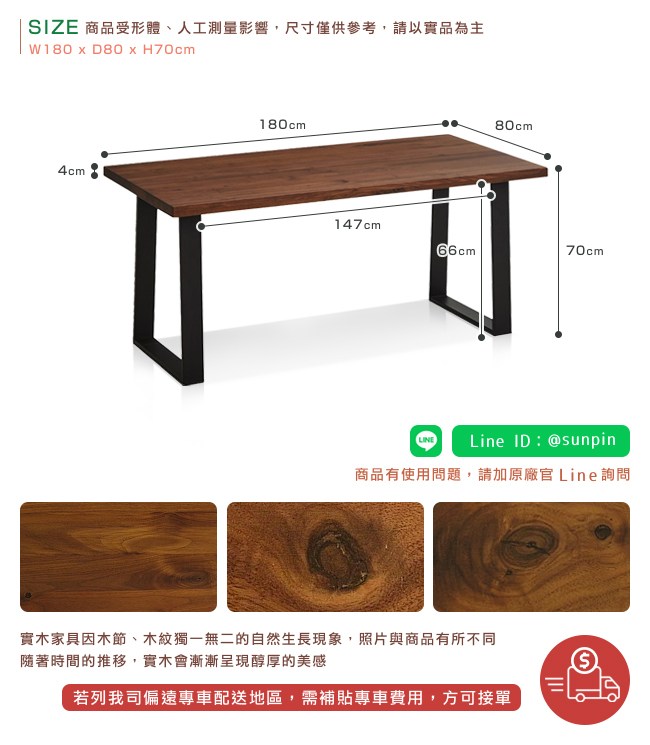 ・實木家具因木節、木紋獨一無二的自然生長現象,照片與商品有所不同。