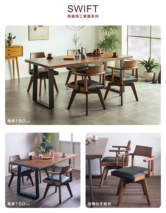 【DAIMARU】SWIFT斯維特工業風胡桃木餐桌-幅180cm