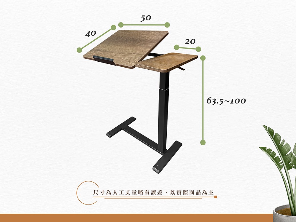 手動式氣壓升降邊桌 筆電桌 床邊桌