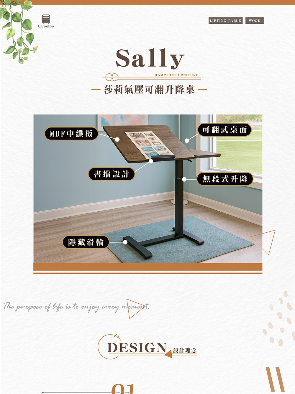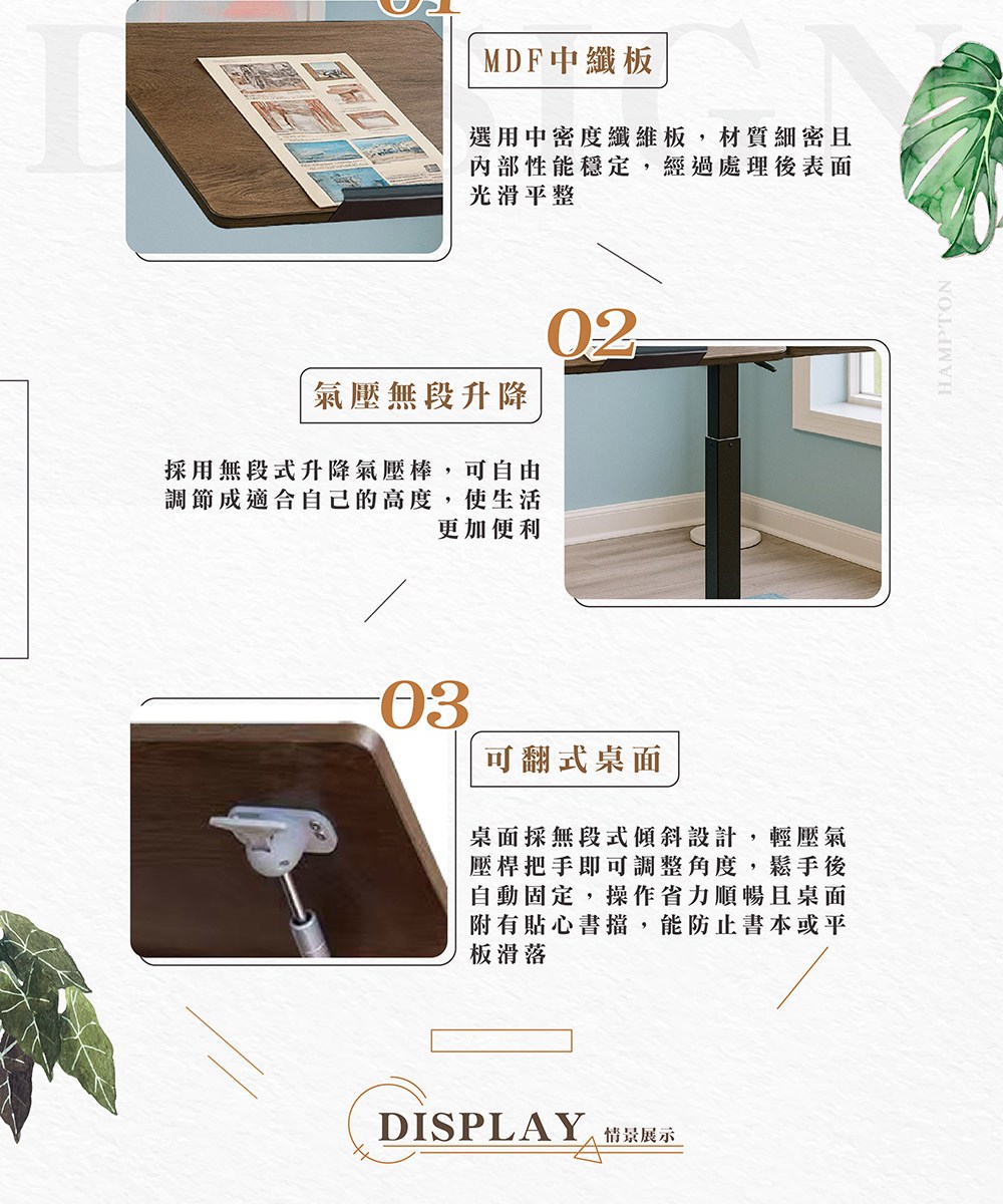 【Hampton 漢汀堡】莎莉氣壓可翻升降桌-黑腳