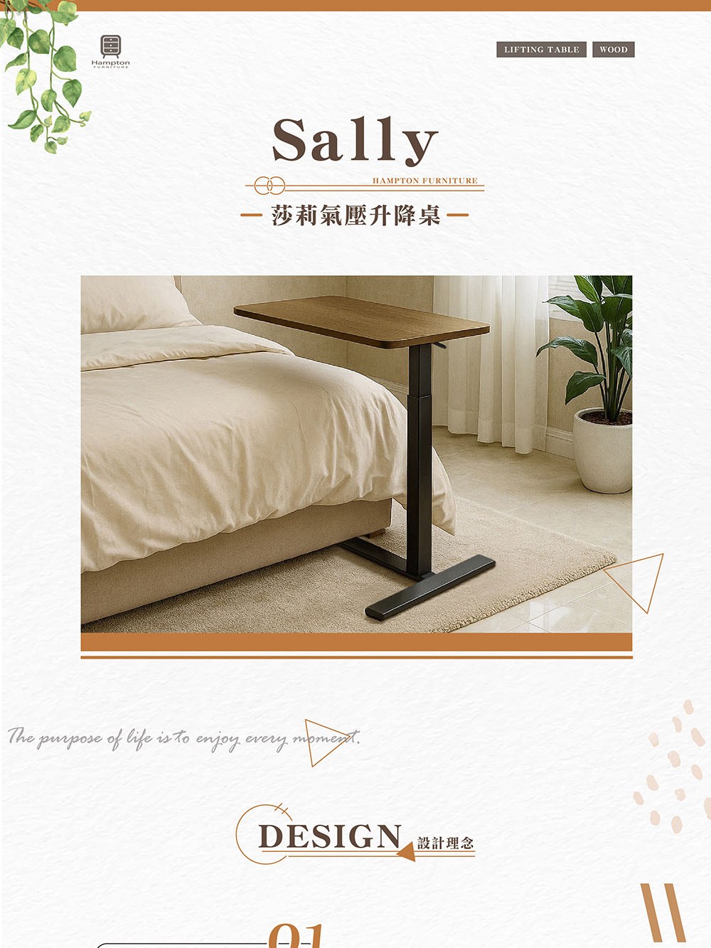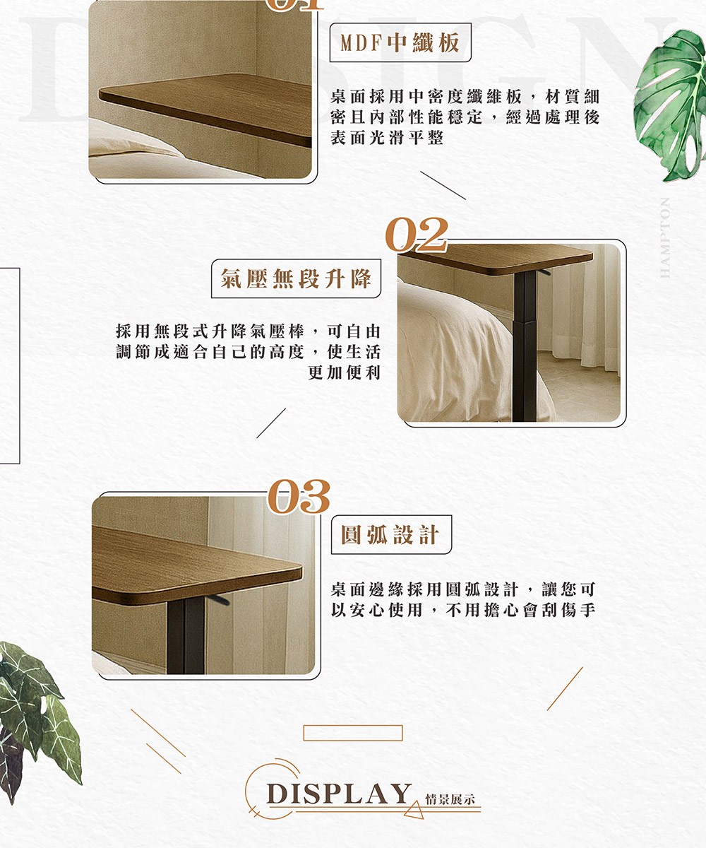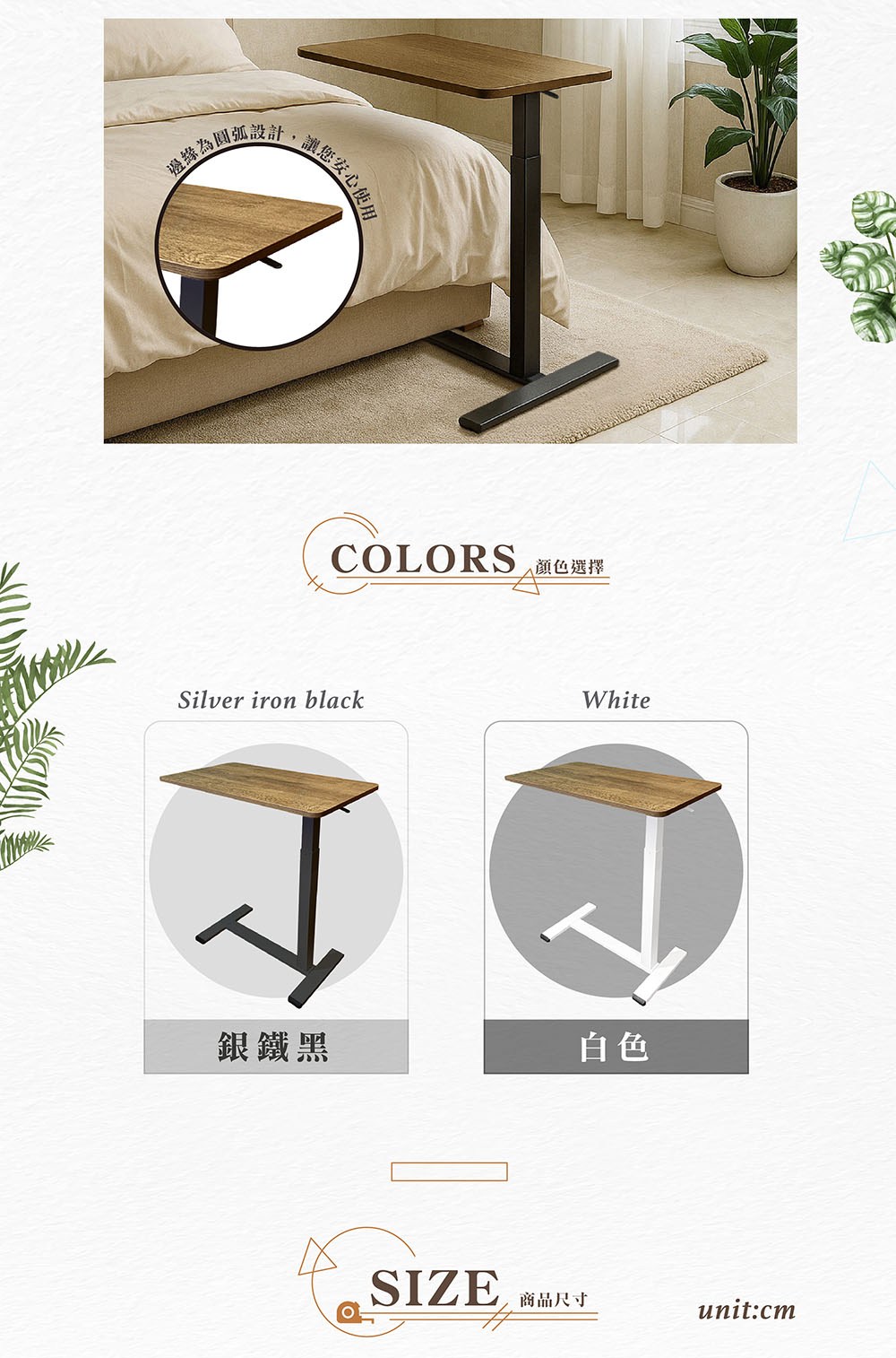樂嫚妮 氣壓升降桌無段移動邊桌/床邊桌-(5色)原木色