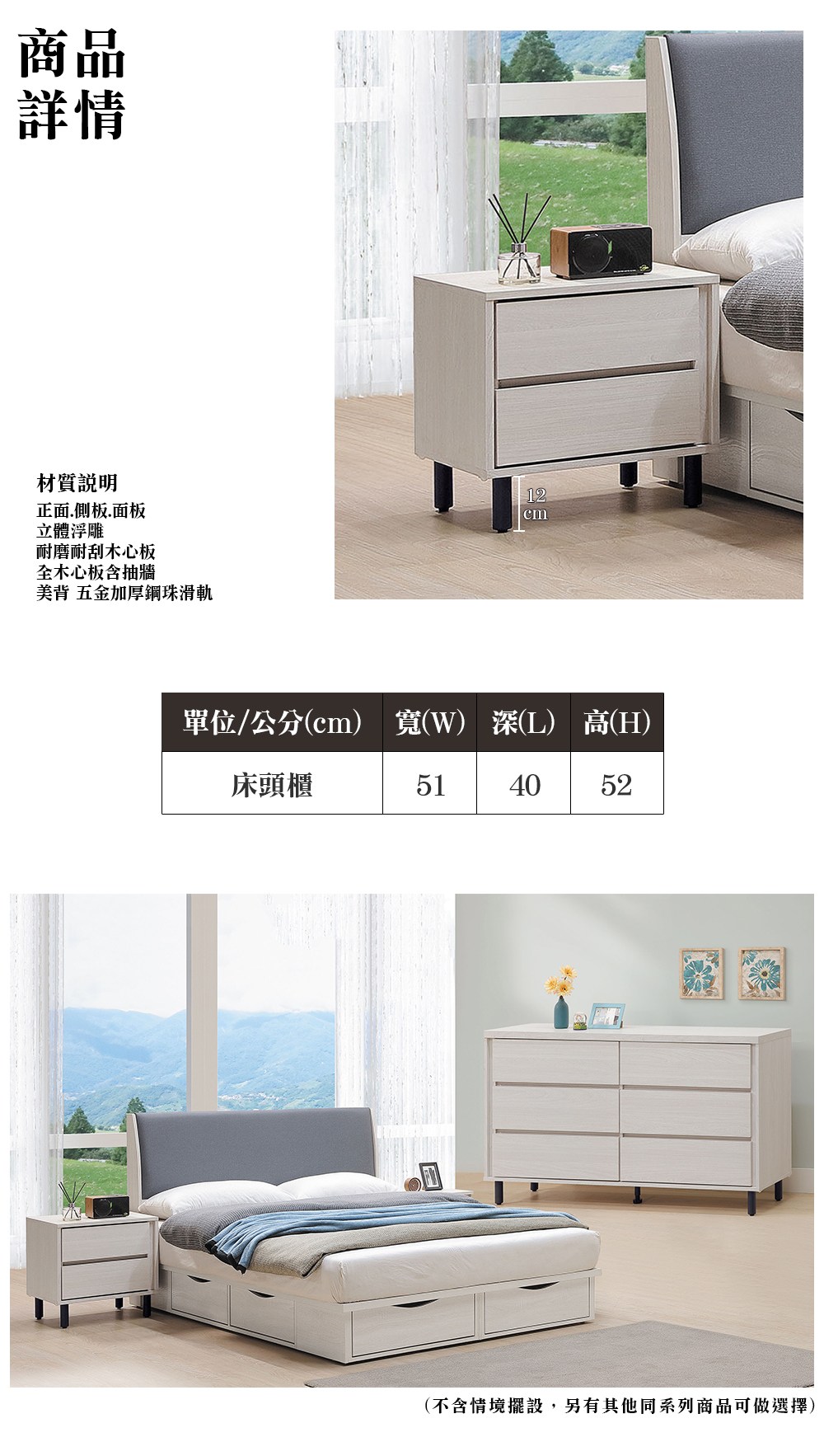 ※此賣場僅販售 麗凱1.7尺二抽床頭櫃※