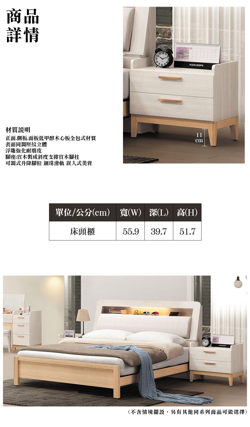 ※此賣場僅販售 雲雅艾1.9尺二抽床頭櫃※