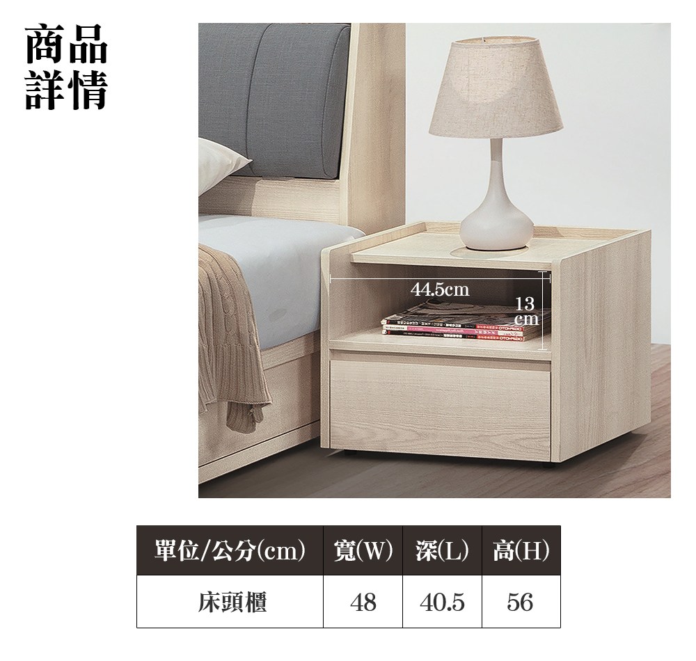 ※此賣場僅販售 林卡洛北美杉木色1.6尺床頭櫃※