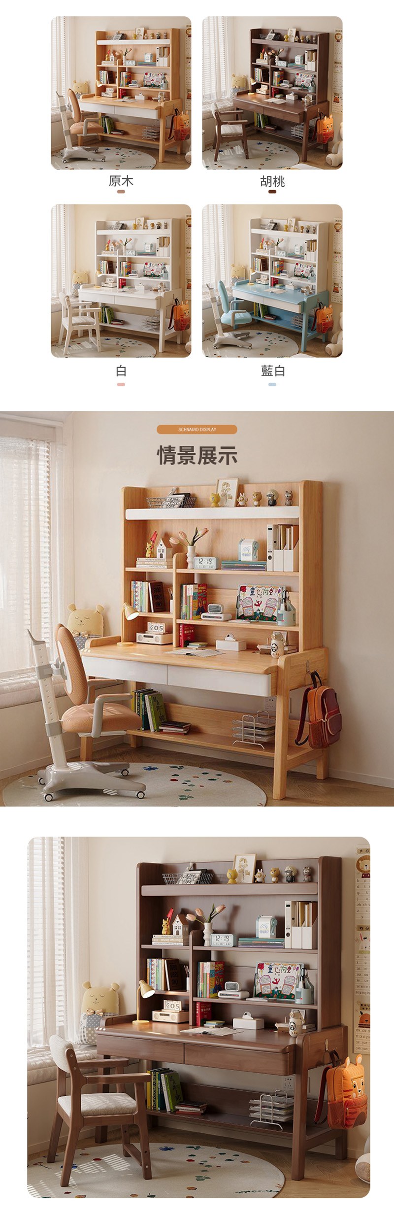 【HappyLife】實木升降書架書桌 100公分 Y12146藍白