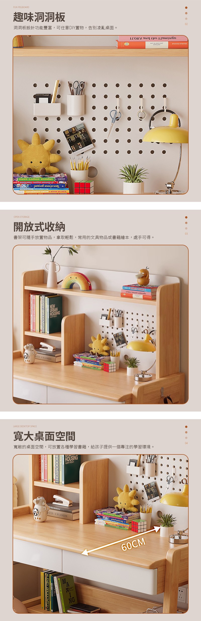 【HappyLife】實木洞洞板書架窄書桌 70公分 Y12114原木