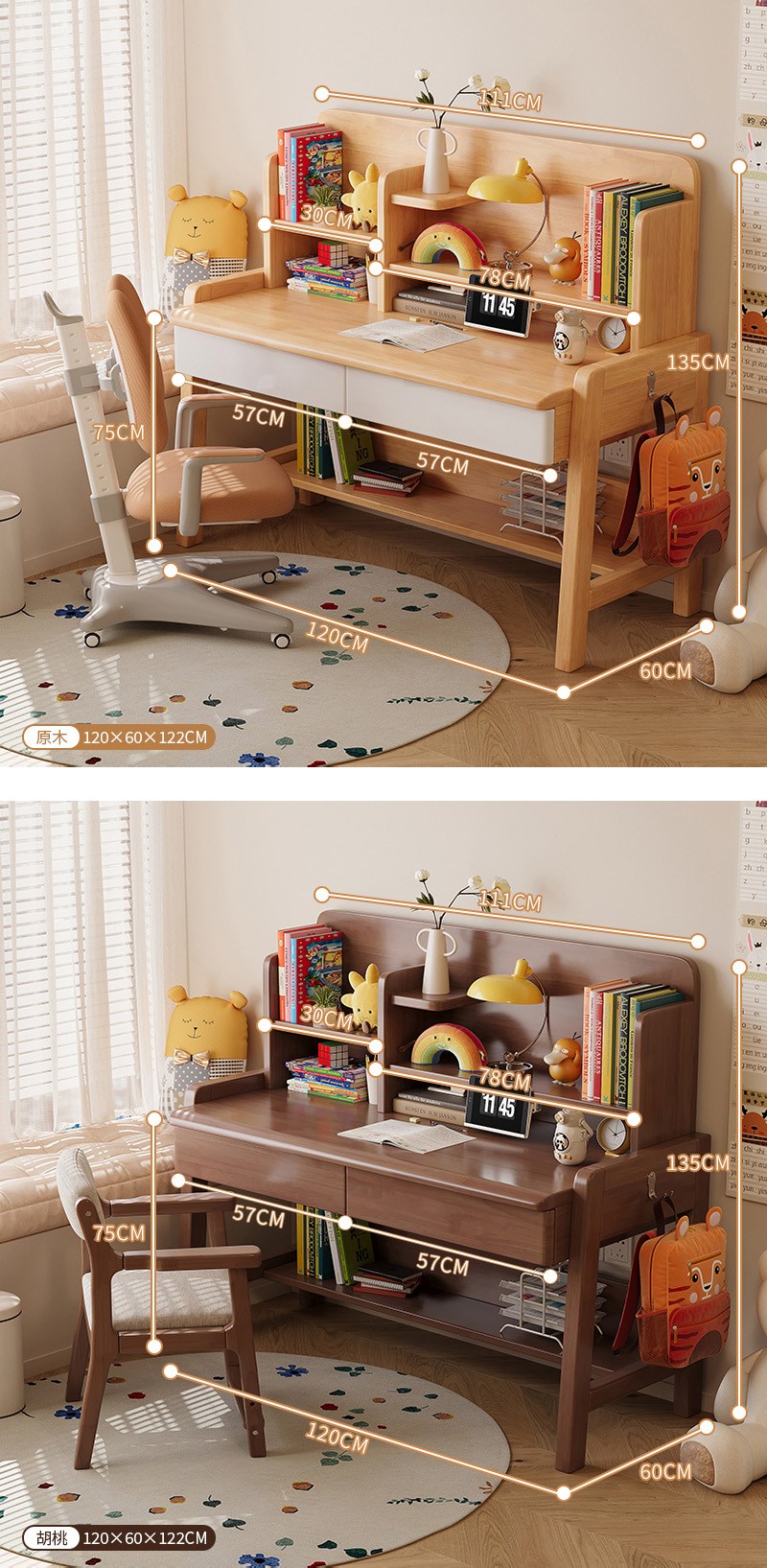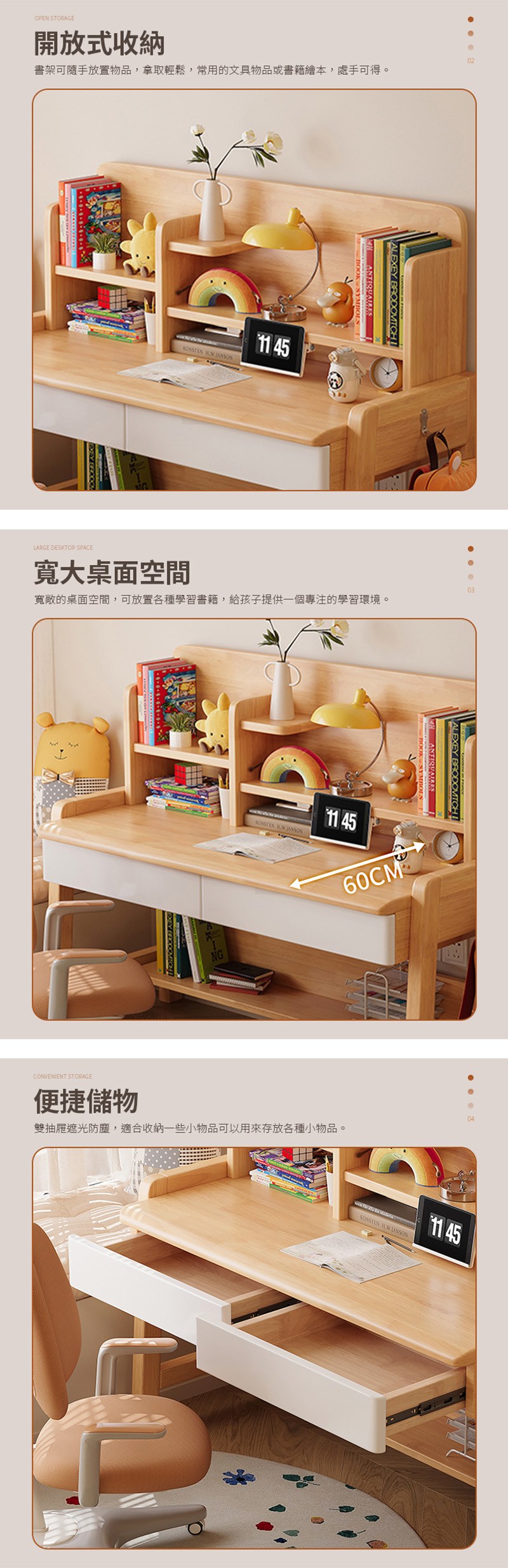 【HappyLife】實木兒童翻蓋書架升降書桌 120公分 Y12054原木