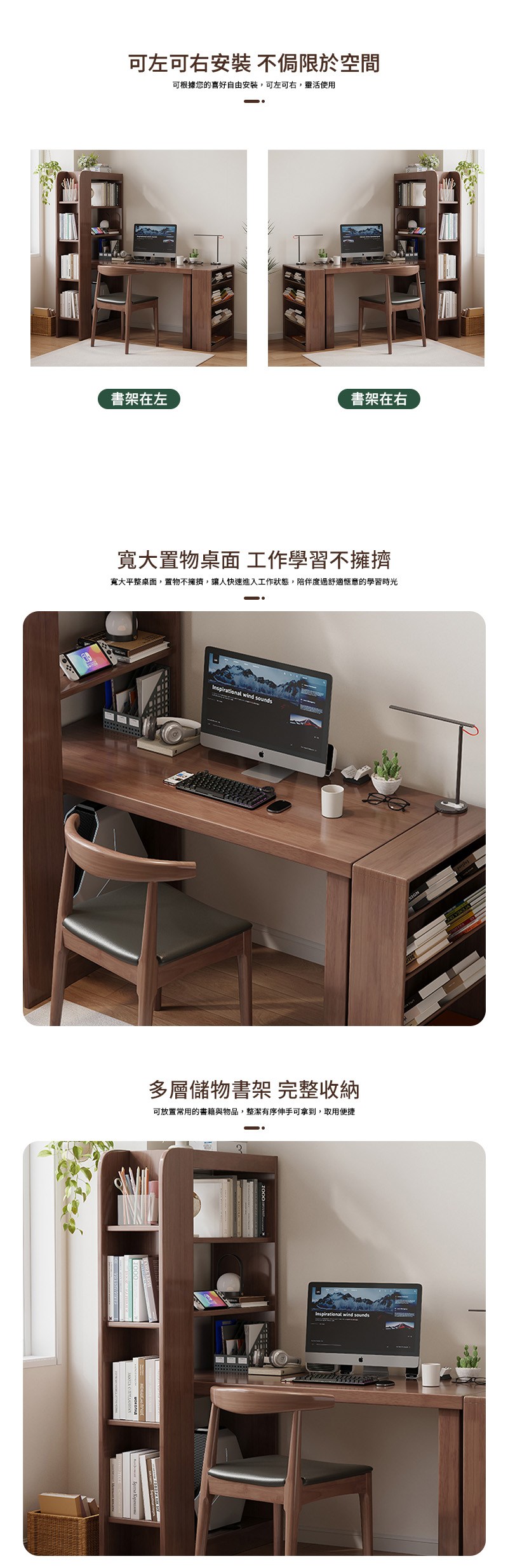 HappyLife 實木L型轉角書架書桌 160×120×190cm Y11378