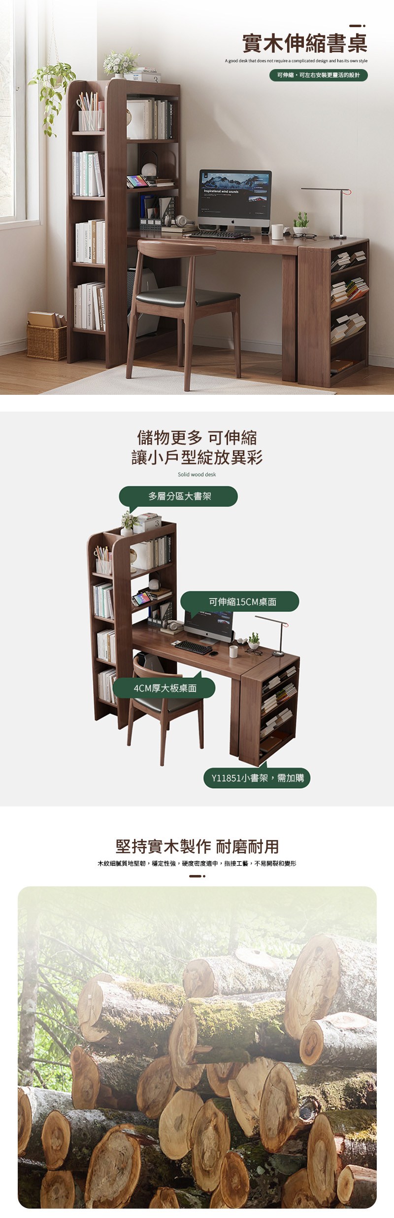 【HappyLife】實木伸縮書桌 135公分 Y12176原木