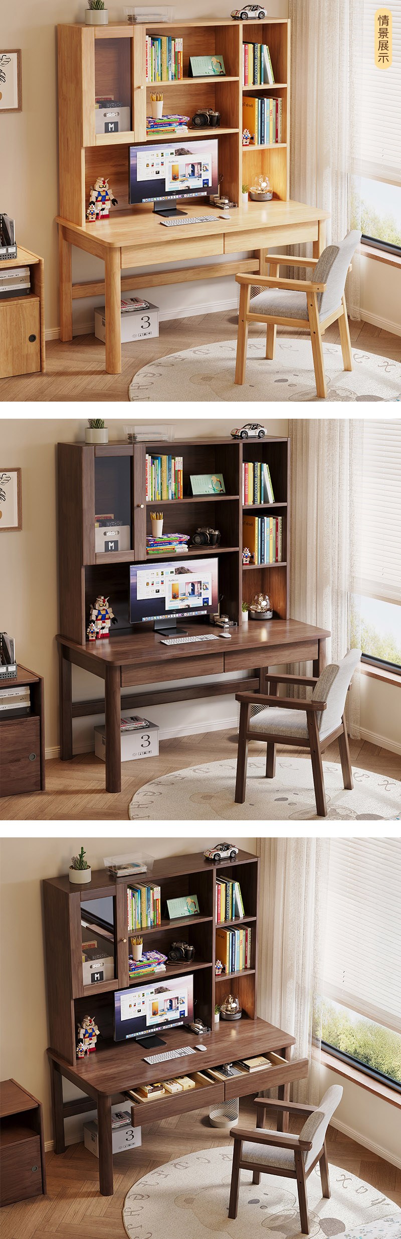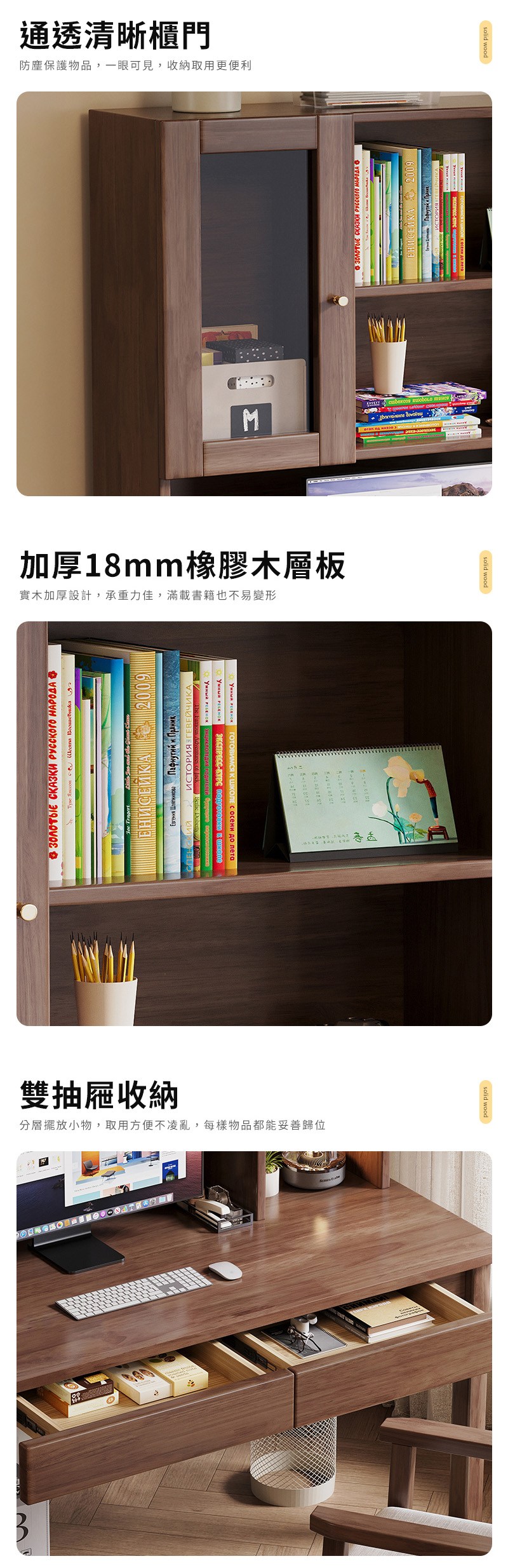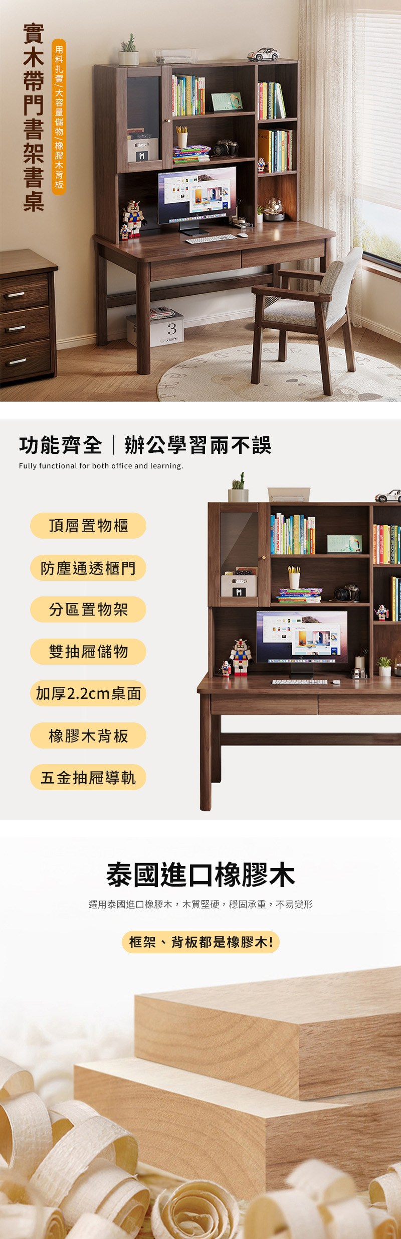 【HappyLife】實木帶門書架中式書桌 100公分 Y12083原木