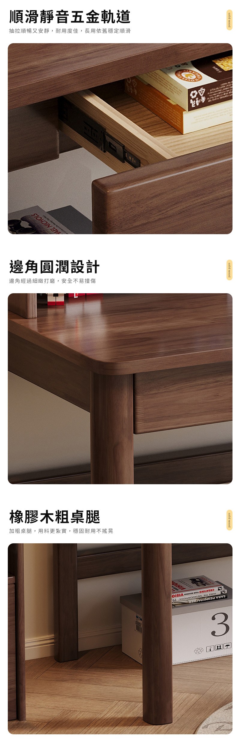 【HappyLife】實木連櫃書桌桌 100公分 Y12090胡桃