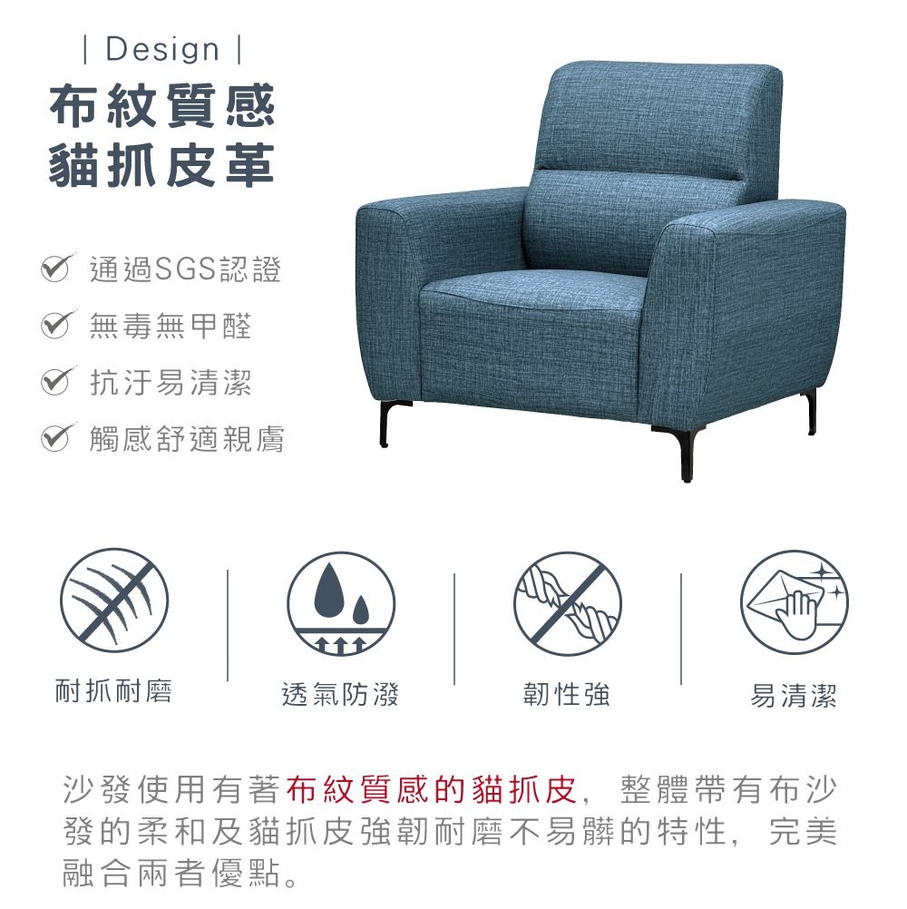 【本木】大和 台灣製耐磨貓抓皮1人坐沙發燕藍灰#6713