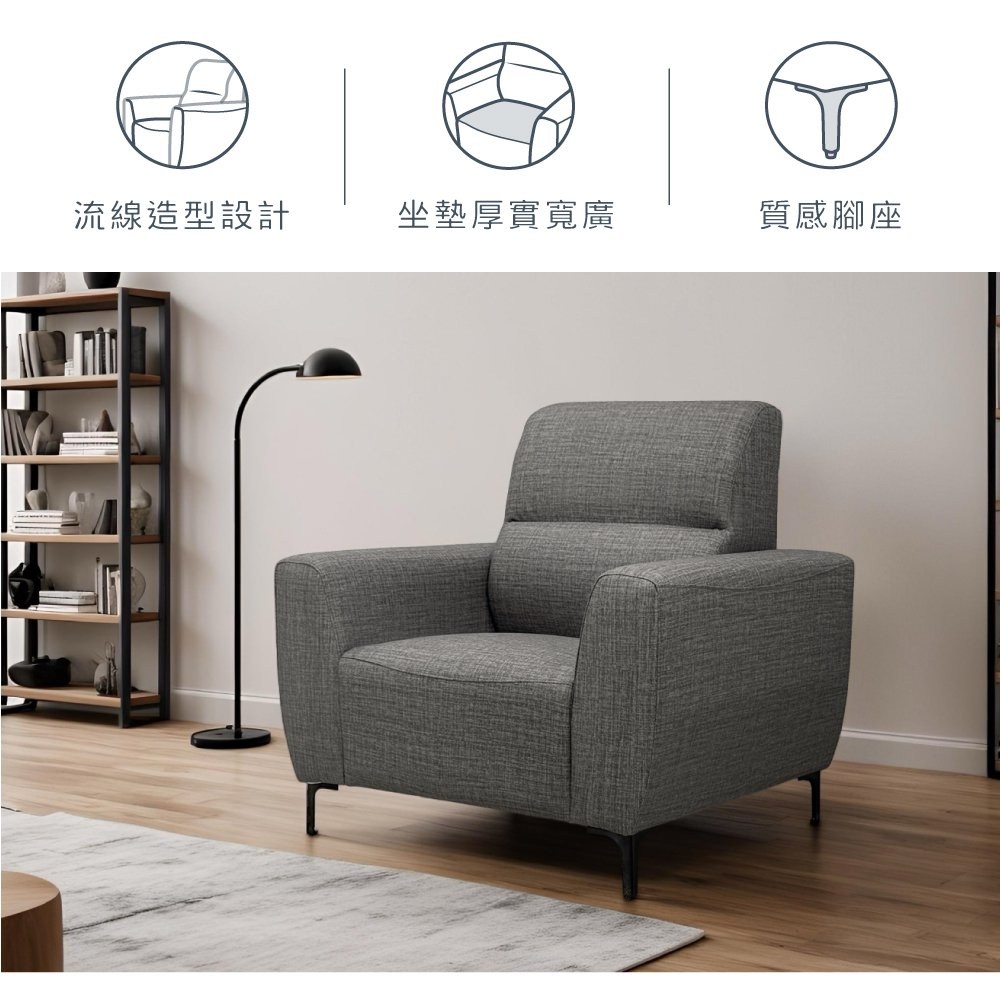 【IDEA】泰勒簡約亞麻布飽滿單人座沙發/布沙發(2色任選)深灰