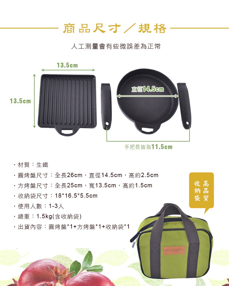 【WASHAMI】旅行者鑄鐵煎烤盤組 71080230