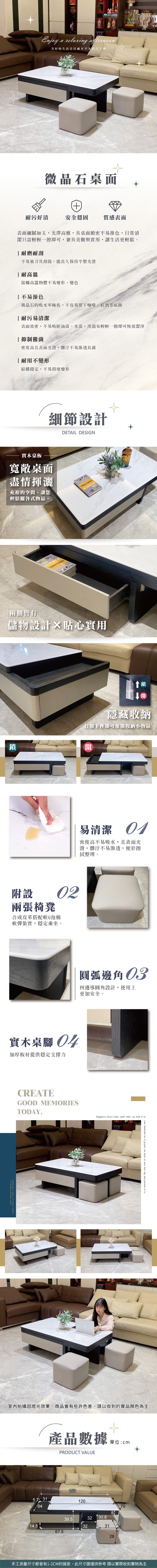 ●產品材質:微晶石大理石紋桌面、胡桃色實木桌板、抽屜面板塑合板烤漆、合成皮面泡棉小椅凳