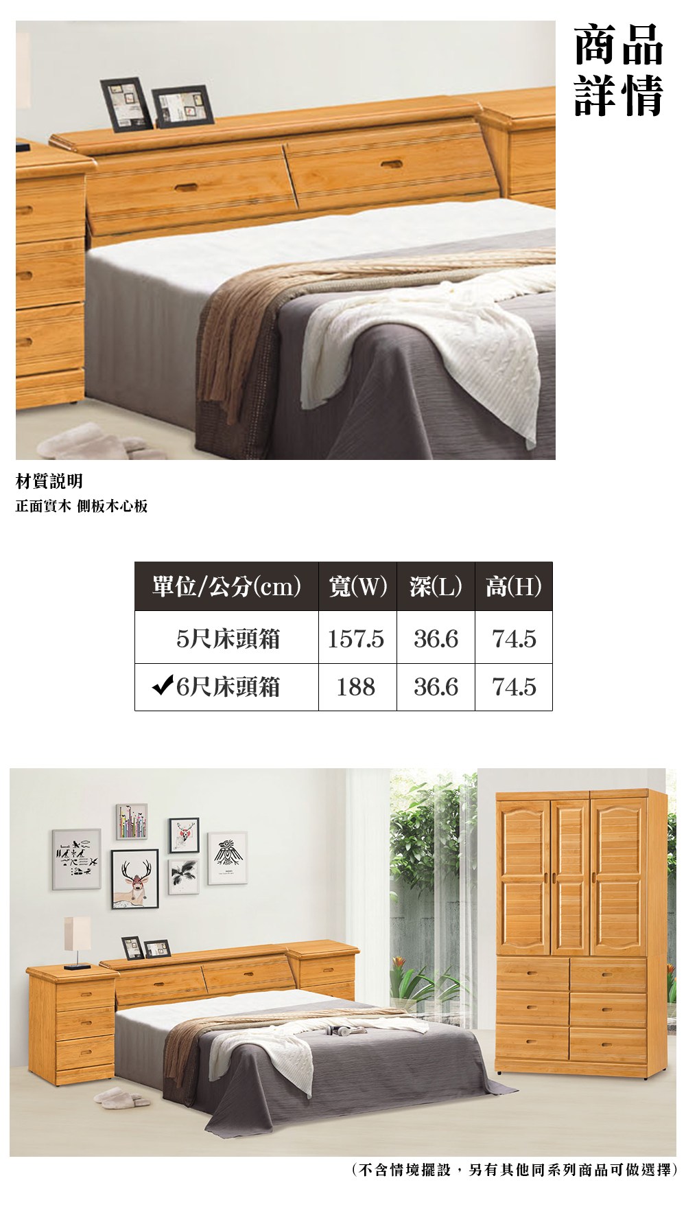 ※此賣場僅販售 陵格芬正赤陽木色床頭箱(雙大6尺)※
