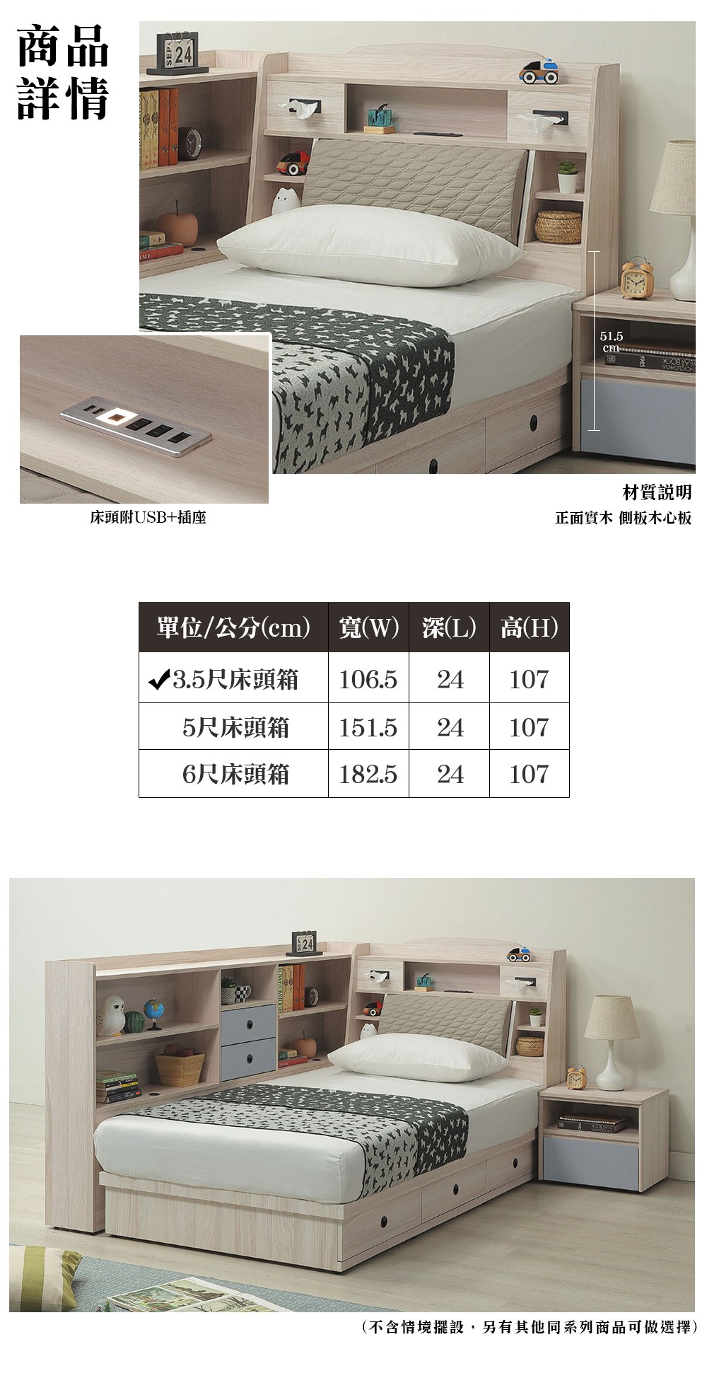 ※此賣場僅販售 恩格斯USB夜燈靠枕床頭箱(單大3.5尺)※