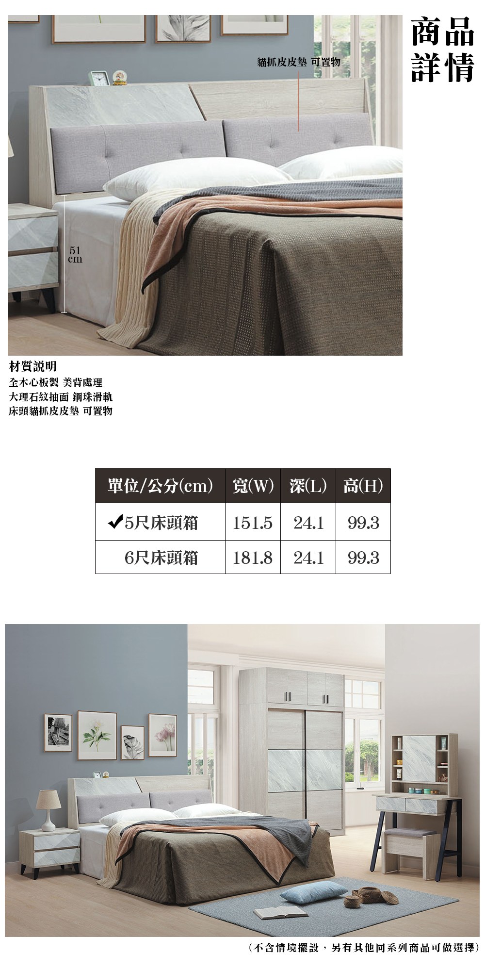 ※此賣場僅販售 妮曼艾貓抓皮靠枕床頭箱(雙人5尺)※