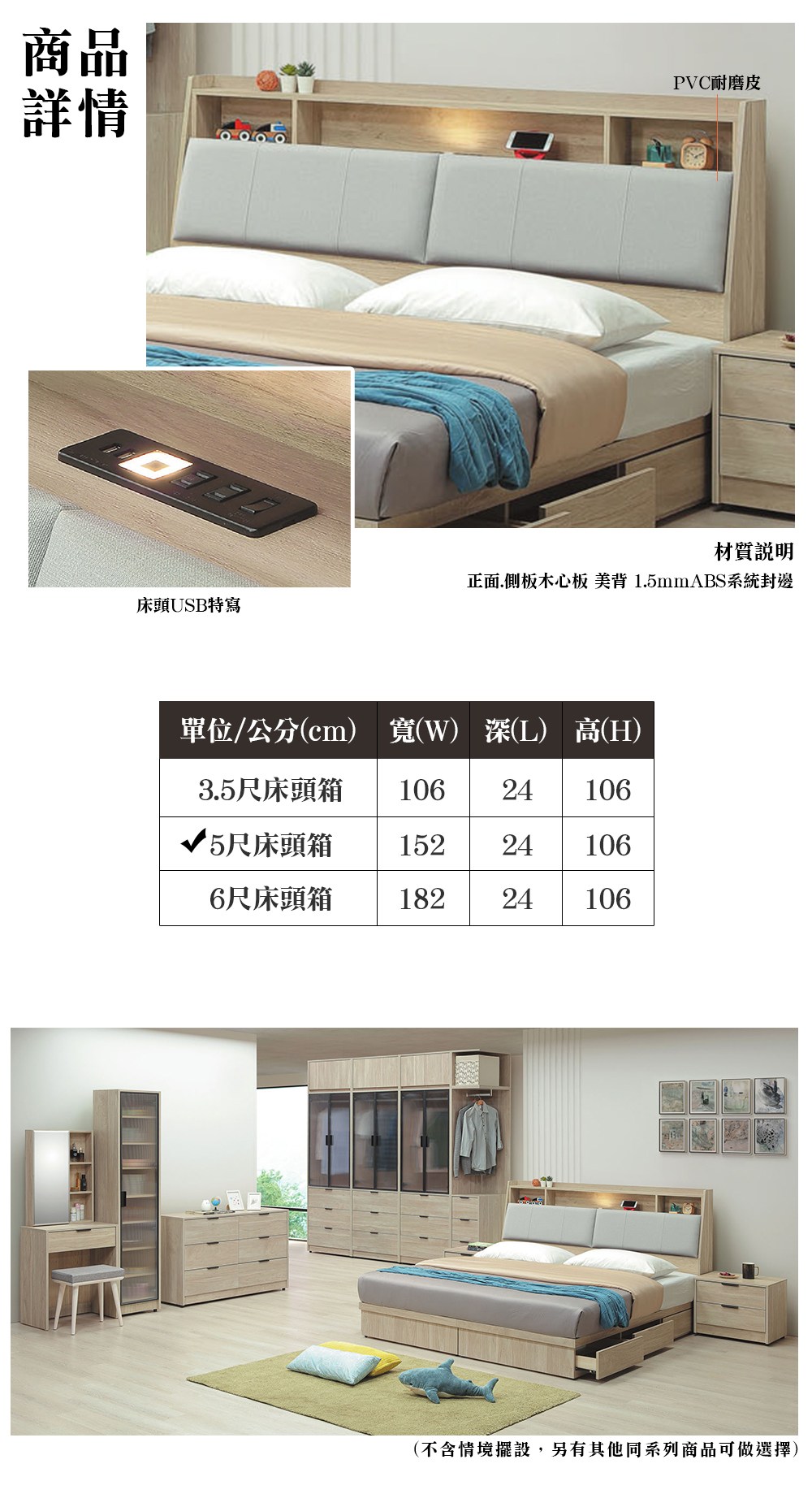 唯熙傢俱-查理白橡色5尺床頭箱