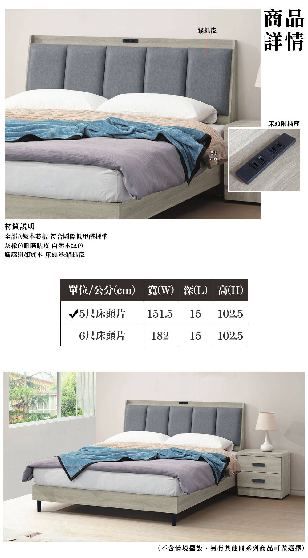 ※此賣場僅販售 恩樂米貓抓皮靠枕插座床頭片(雙人5尺)※