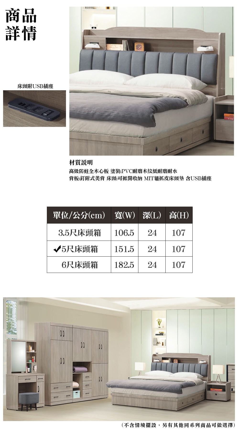 【顛覆設計】恩樂米貓抓皮靠枕插座床頭片(雙人5尺)